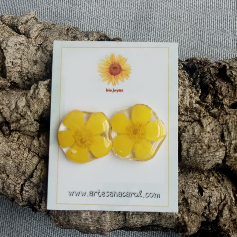 PENDIENTE BOTÓN DE ORO ENCAPSULADO EN RESINA CON CIERRE HIPOALERGÉNICO.