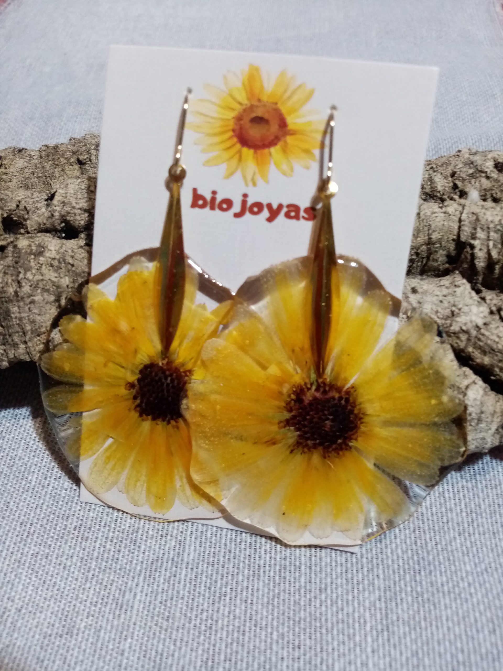 PENDIENTES FLOR MARGARITA AMARILLA GRANDE ENCAPSULADA EN RESINA CON CIERRE EN ACERO