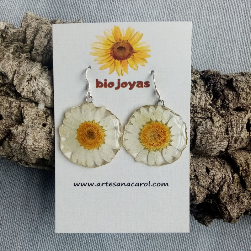 MARGARITA FLOR SILVESTRE ENCAPSULADA EN RESINA CON CIERRE EN PLATA.